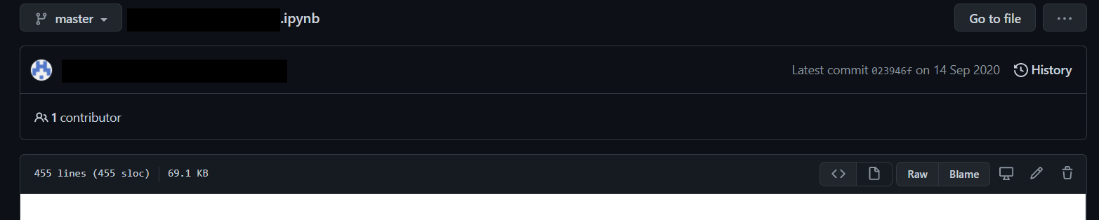 1. 공유하고자 하는 쥬피터 노트북의 raw 코드를 복사 - 붙여넣기한다.