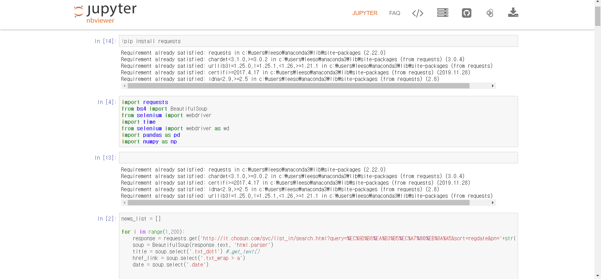/** NbViewer를 통해 Jupyter Notebook Share하기 작성자 : 3개월 2016/11/7 */ Jupyter notebook으로 작성한 코드를 누군가와 공유하고 싶을 때 Nbviewer를 사용하면 간편하게 웹을 통해 코드와 코드의 실행 결..