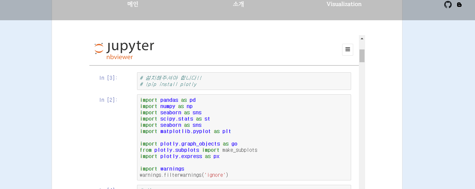 포트폴리오 사이트들을 찾아보니 다들 웹 사이트 내에서 바로 쥬피터노트북이 보이게 잘 설정하던데