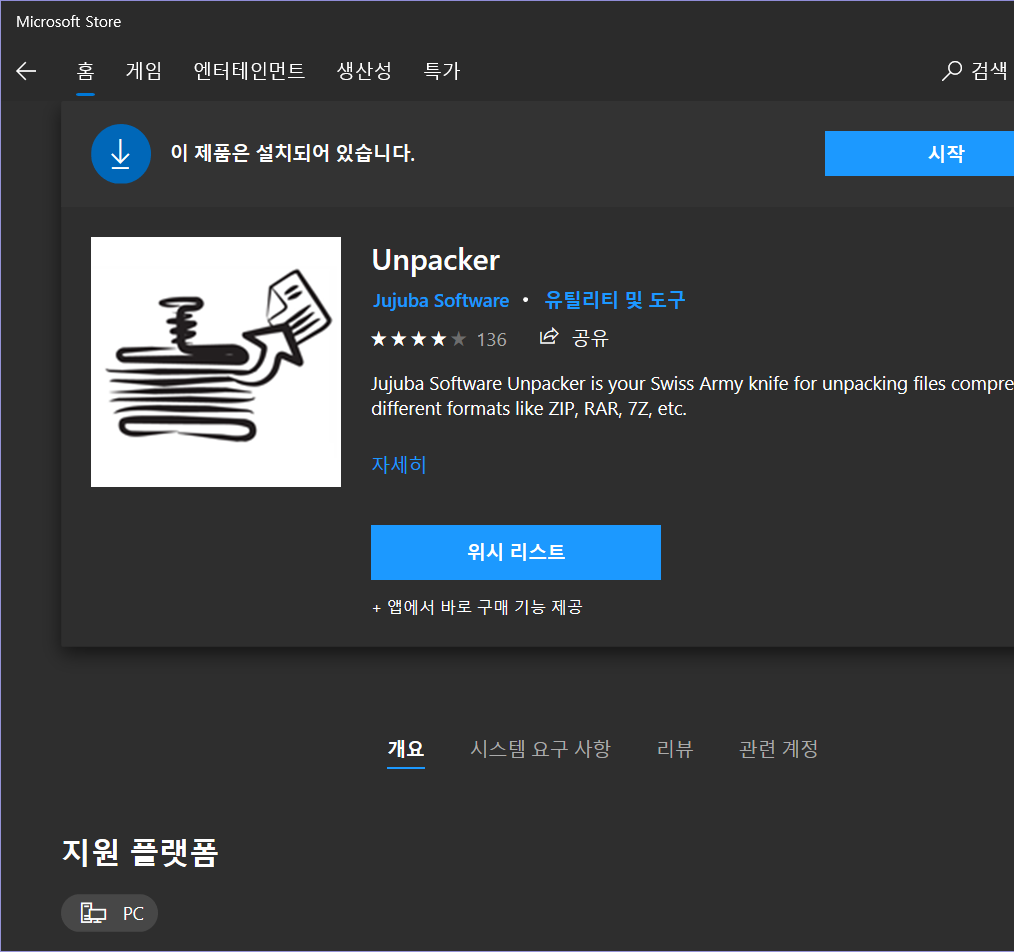 - unzip으로는 window에서 압축한 파일이기에 불가능!