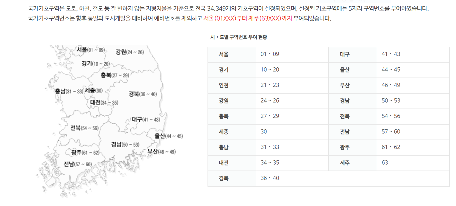 주소를 입력하는 형식은 처음에 구역별로 기준이 숫자로 나눠져 있는 우편번호로 하려했다.