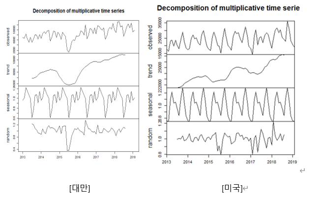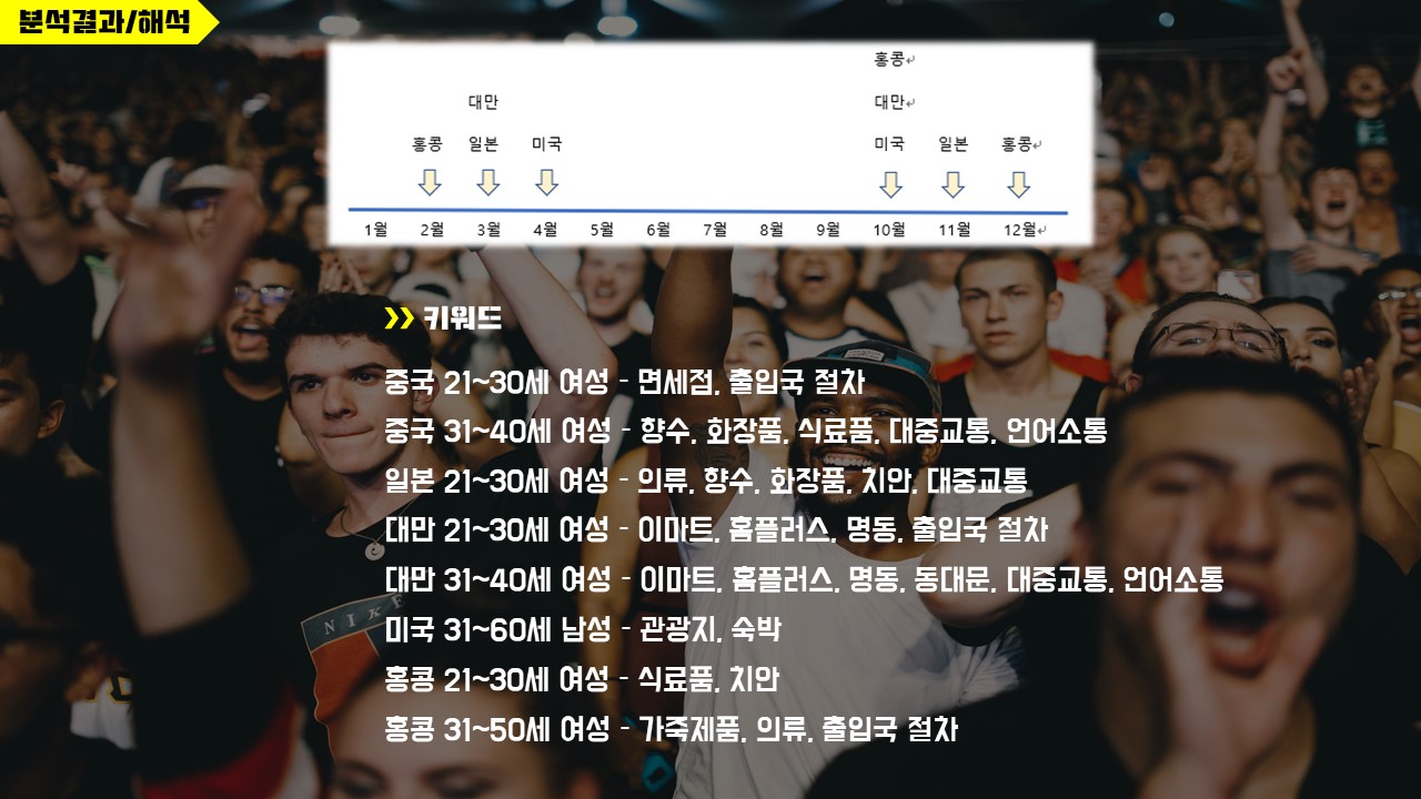 ‘어떤’ 외국인 관광객들이 ‘언제’ 가장 많이 입국할 지 예측하기 위해 시계열 분석기법을 사용하였으며,