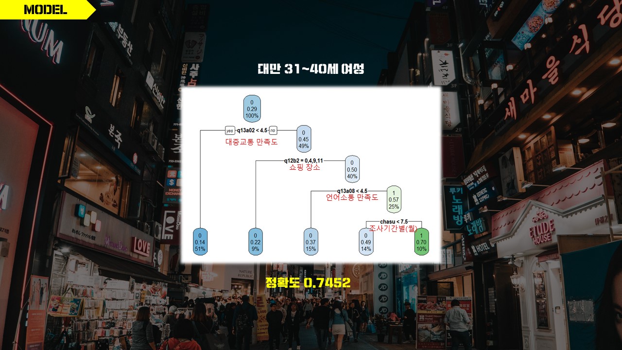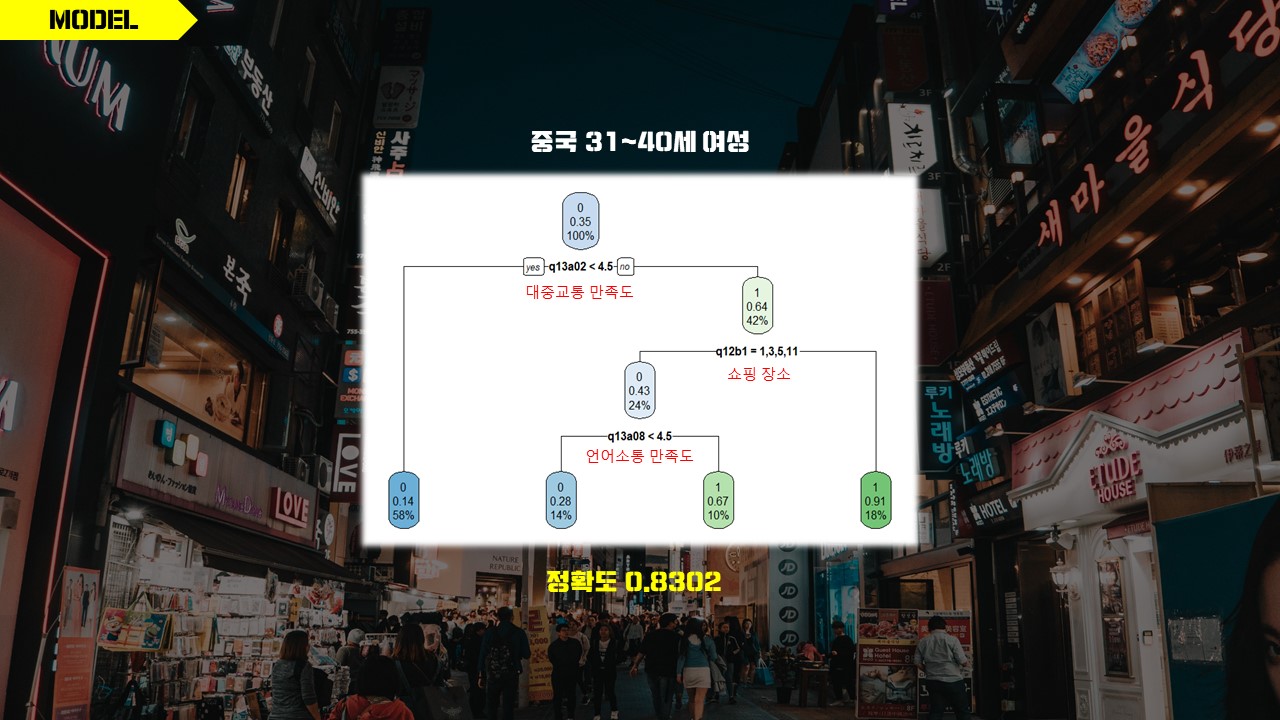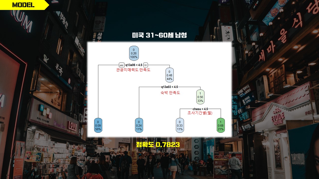 어떤 변수가 관광객 유치에 필요한지 알아보기 위해 의사결정나무 기법을 사용했다.