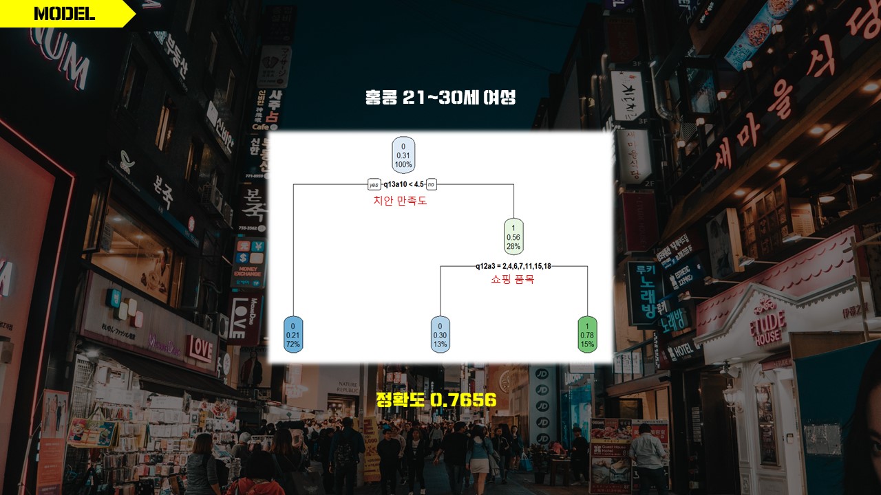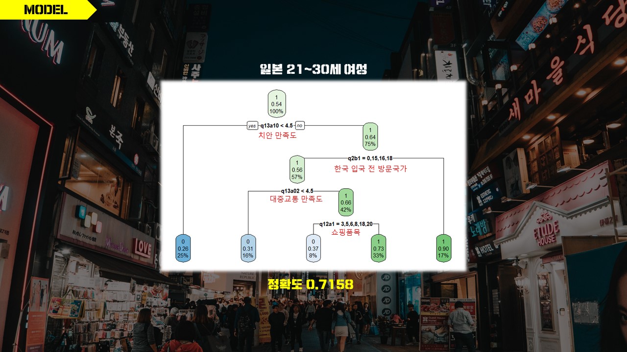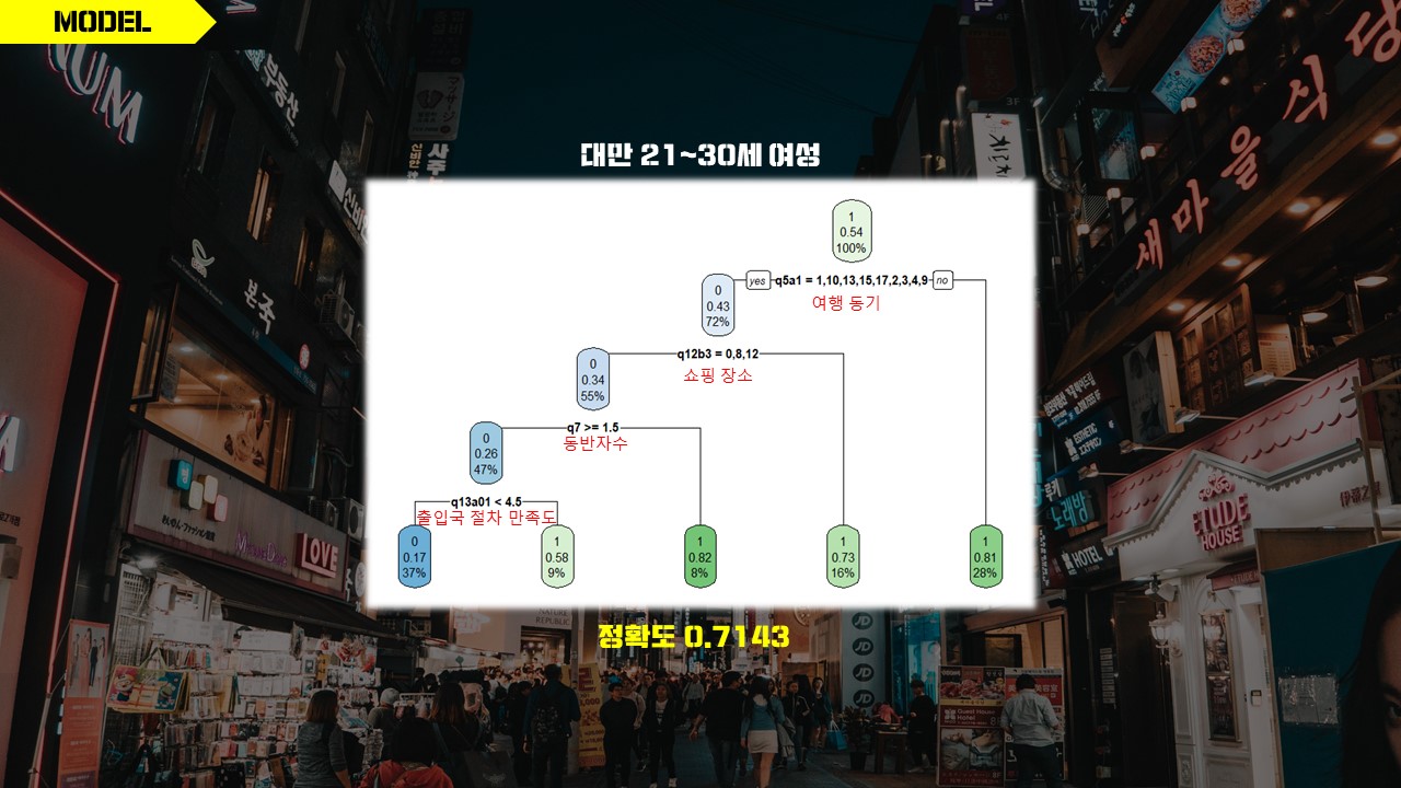 어떤 변수가 관광객 유치에 필요한지 알아보기 위해 의사결정나무 기법을 사용했다.