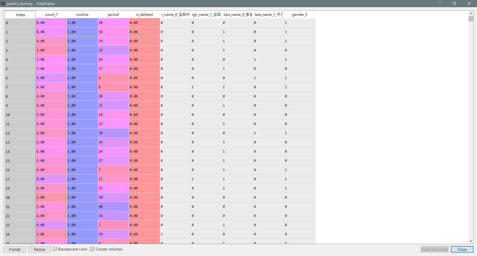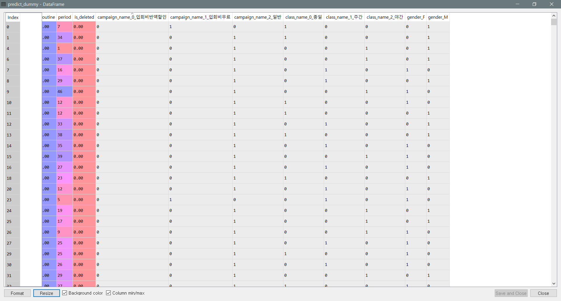 - 유지회원 데이터의 수를 탈퇴회원 데이터의 수와 맞춰 모델링