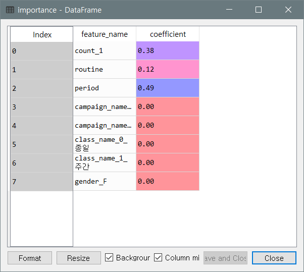 1. 전제조건 스포츠센터 고객분석 데이터 사용 고객별 이용 횟수 등의 예측 2021/01/30 - [Data Analysis] - 스포츠센터 회원 분석 - 데이터 가공, 통계량 파악 스포츠센터 고객분석 1. 전제조건 (1) 3가지