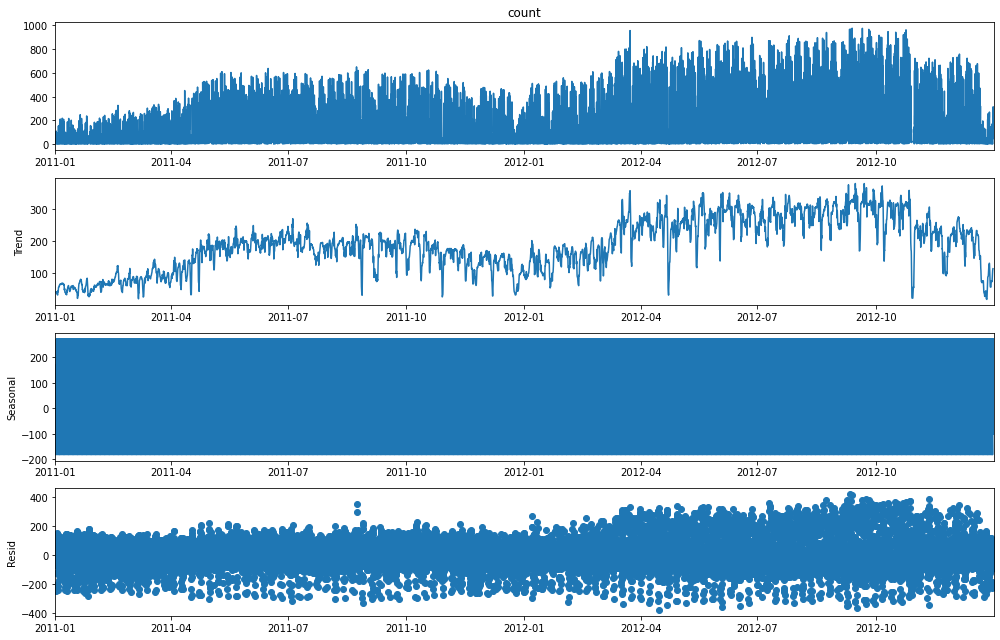 - additive 모형으로 데이터 분해 : trend + seasonal + residual (additive)