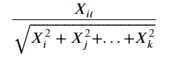 - 각 feature를 전체 변수들의 크기로 나눠 변환