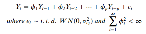 - 차수가 유한한 (p) 자기자신의 과거값들의 선형조합