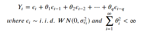 - 시계열 데이터가 가우시안 백색잡음의 현재값과 과거값의 선형조합