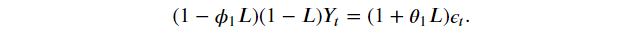 - 𝑌𝑡 = 𝑌(𝑡−1)+𝑌(𝑡−12)−𝑌(𝑡−13)+𝜖𝑡
