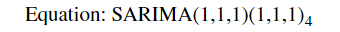 - 𝑌𝑡 = 𝑌(𝑡−1)+𝑌(𝑡−12)−𝑌(𝑡−13)+𝜖𝑡+𝜃𝜖(𝑡−1)+Θ𝜖(𝑡−12)+𝜃Θ𝜖(𝑡−13)