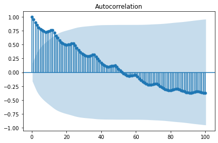 sm.graphics.tsa.plot_acf(candidate_none, lags=100, use_vlines=True)