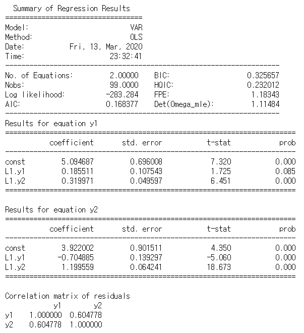 - VAR(p)로 변환된 종속변수로 식을 표현