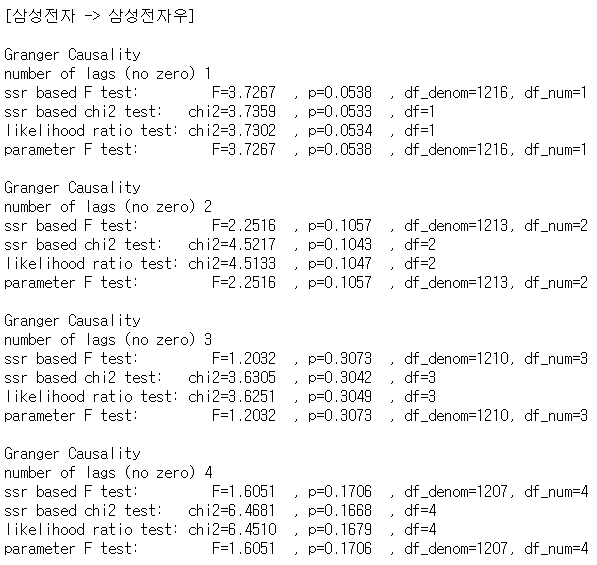 (2) Granger Causality 실습 - 삼성전자와 삼성전자 우선주 인과관계