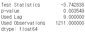 index=['Test Statistics', 'p-value', 'Used Lag', 'Used Observations']))