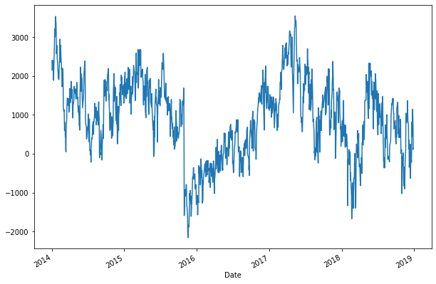- 회귀분석 계수를 가져와 차분이 필요한 이 두 시계열을 선형결합
