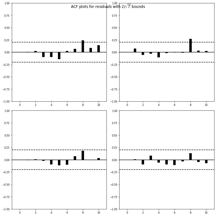 - VAR 모형을 여러 시계열 상관관계를 통해 각 변수가 다른 변수에 어떤 영향을 주는지 임펄스 반응 함수로 확인
