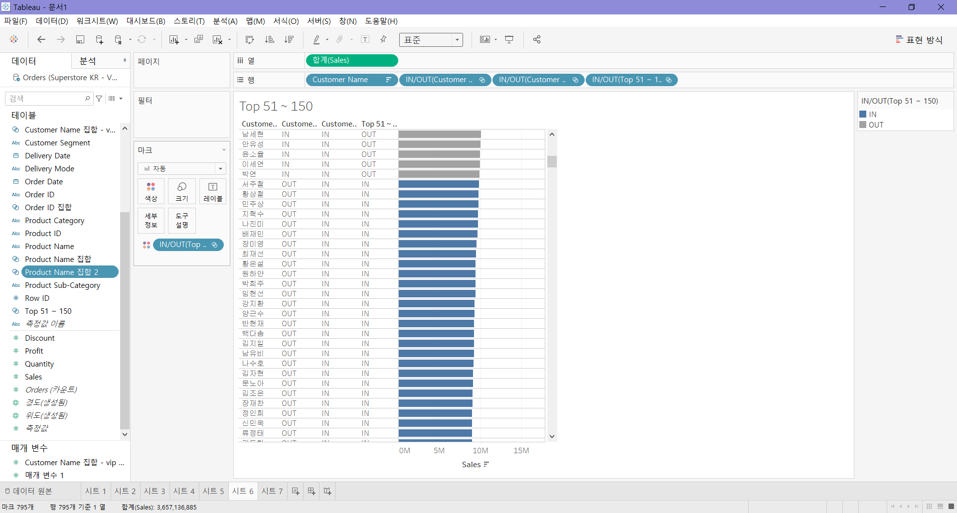 - 시도 필터가 Top N 필터보다 낮은 Order가 되면 Top N 반영되지 않으므로 컨텍스트 필터로 적용